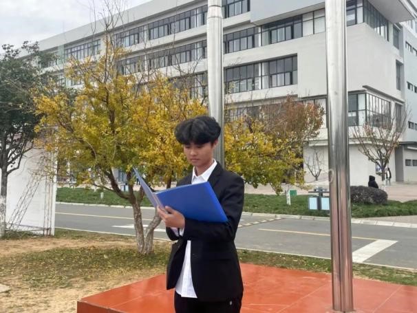 升旗仪式第二项:美术设计学院团总支学生会副主席孙骋杰国旗下发言