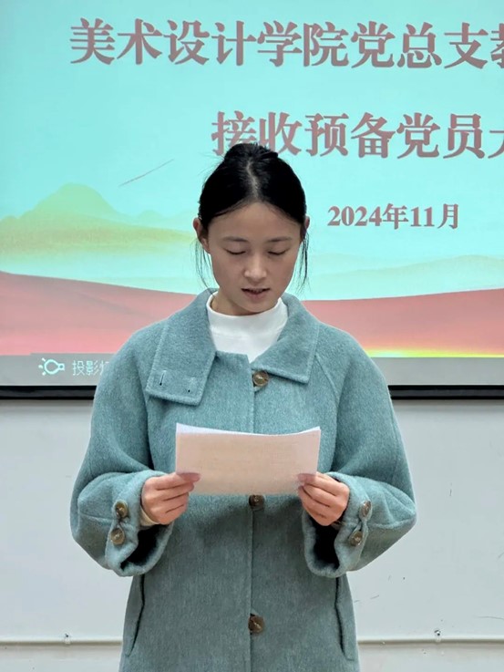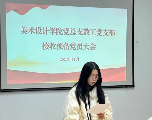 为进一步加强基层党组织建设,充分发挥基层党支部的战斗堡垒作用,落实党支部发展党员工作,2024年11月18日,我院教工党支部在艺术工坊A216教室召开接收预备党员大会。会议由教工党支部书记刘红英主持。