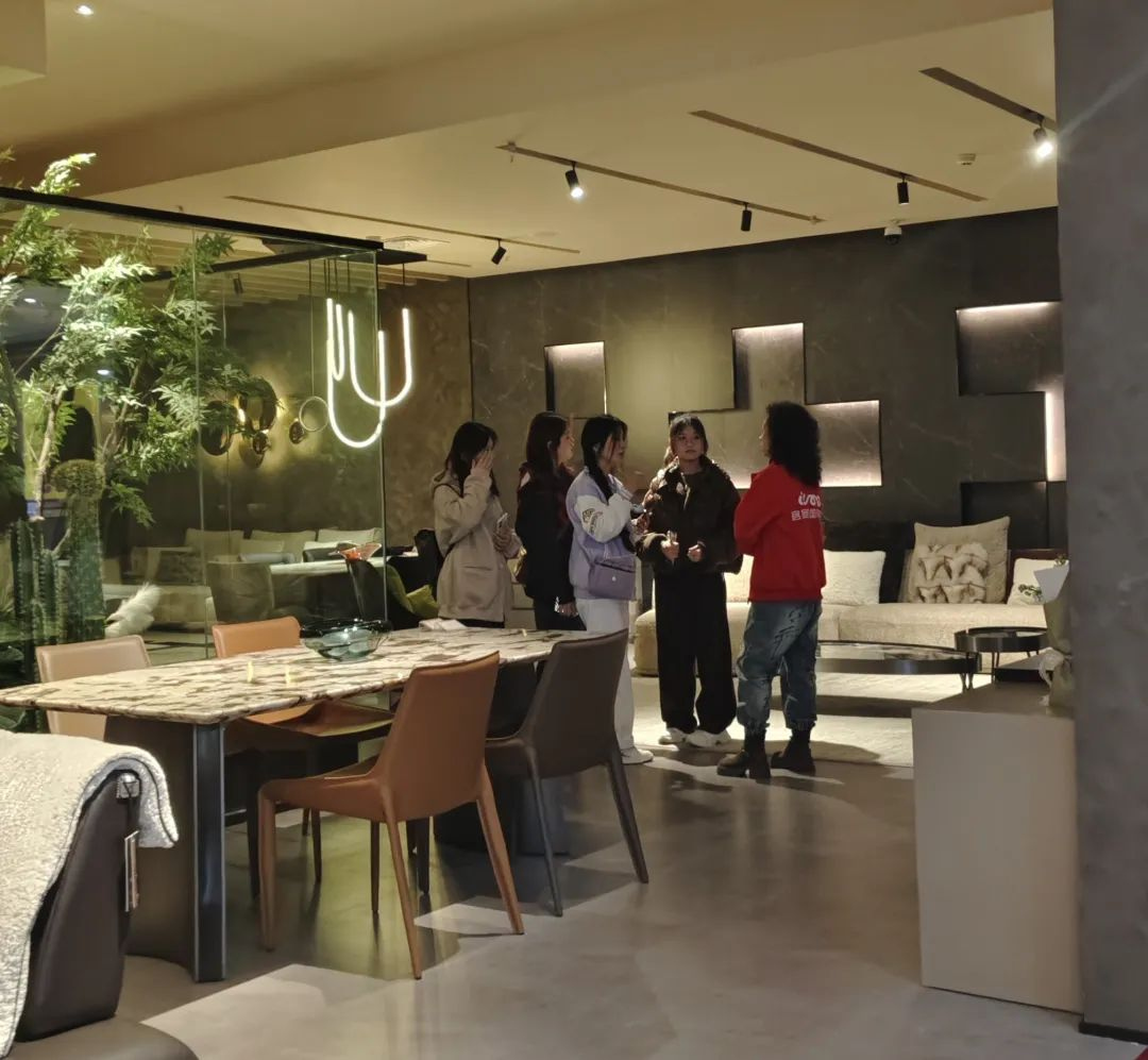 调研活动中,同学们还与销售人员、家具设计师进行了互动交流,了解了市场上家具产品的定位以及消费者的偏好和需求。通过这些交流,同学们对当前家具市场的趋势、消费者的多样化需求有了更清晰的认识,并深刻理解到在家具设计中,如何在审美、实用性与功能性之间找到平衡,满足市场需求。同学们表示,亲身体验不同类型家具的使用感受,帮助他们更直观地理解设计原理,提升了他们的设计思维和问题解决能力。