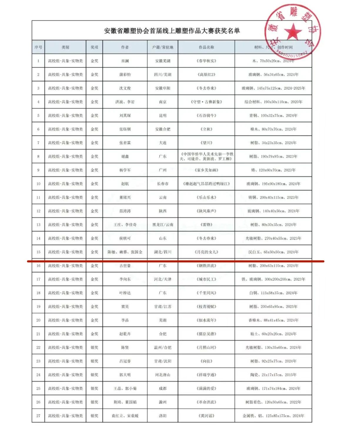 近日,安徽省雕塑协会首届线上雕塑作品大赛获奖名单揭晓,美术设计学院公共艺术专业师生凭借卓越的创作实力与深厚的艺术积淀,一举揽获多项大奖,为安徽雕塑艺术领域再添华彩。此次大赛作为安徽省雕塑艺术界的重要盛事,吸引了全国众多高校及艺术机构参与,竞争异常激烈。美术设计学院公共艺术专业师生凭借对徽派文化的深刻理解与艺术创新的执着追求,在众多参赛作品中脱颖而出,成为本次大赛的焦点。