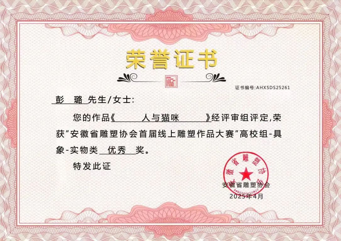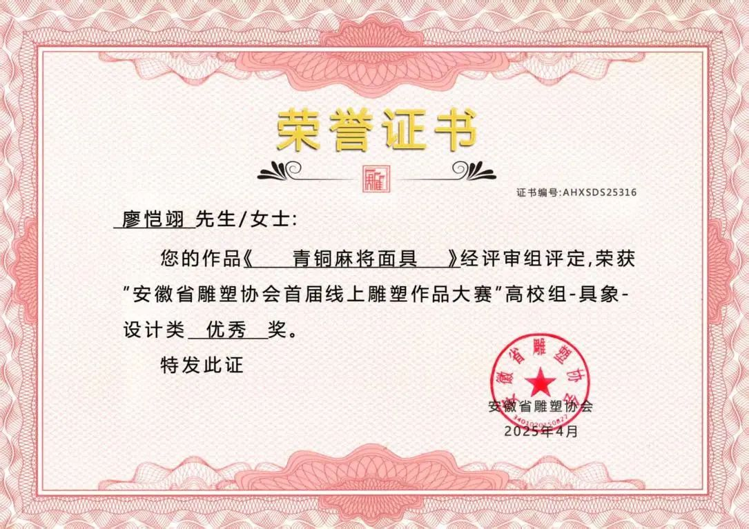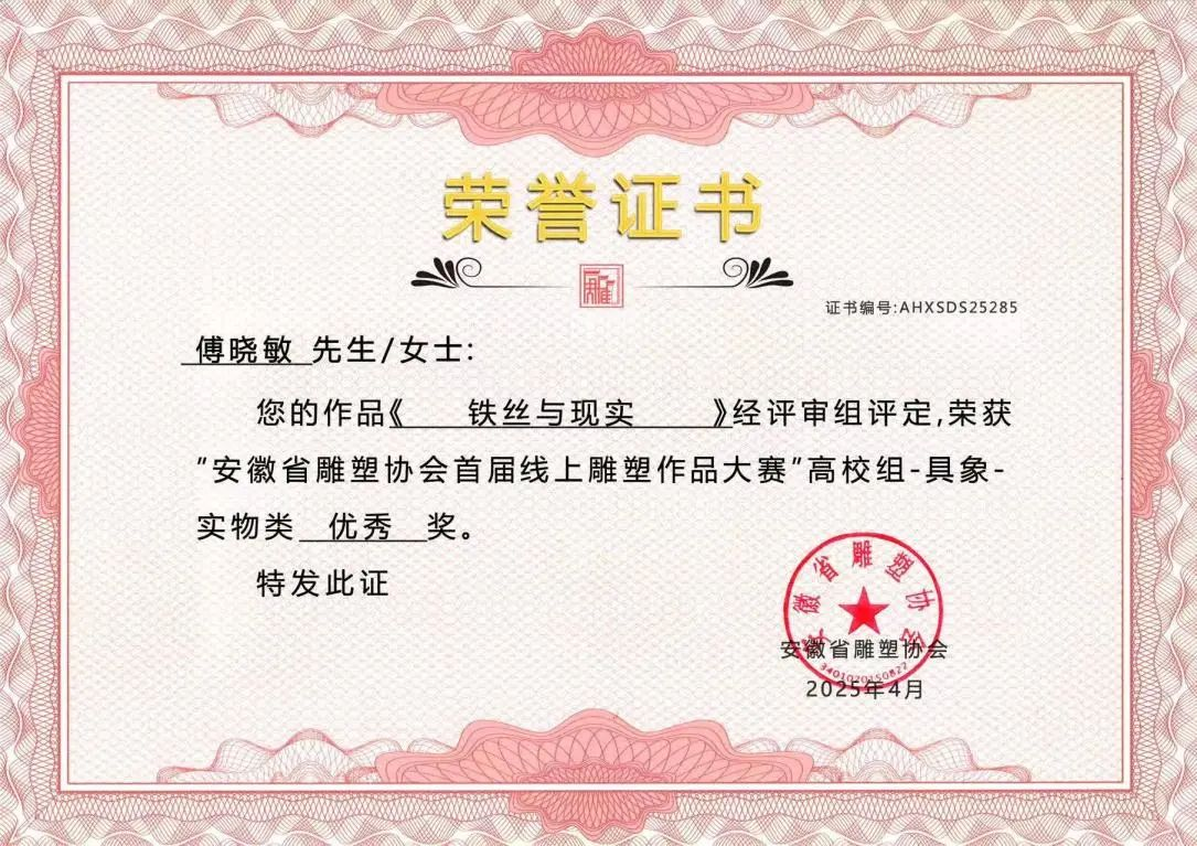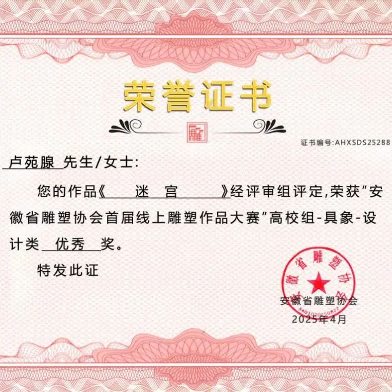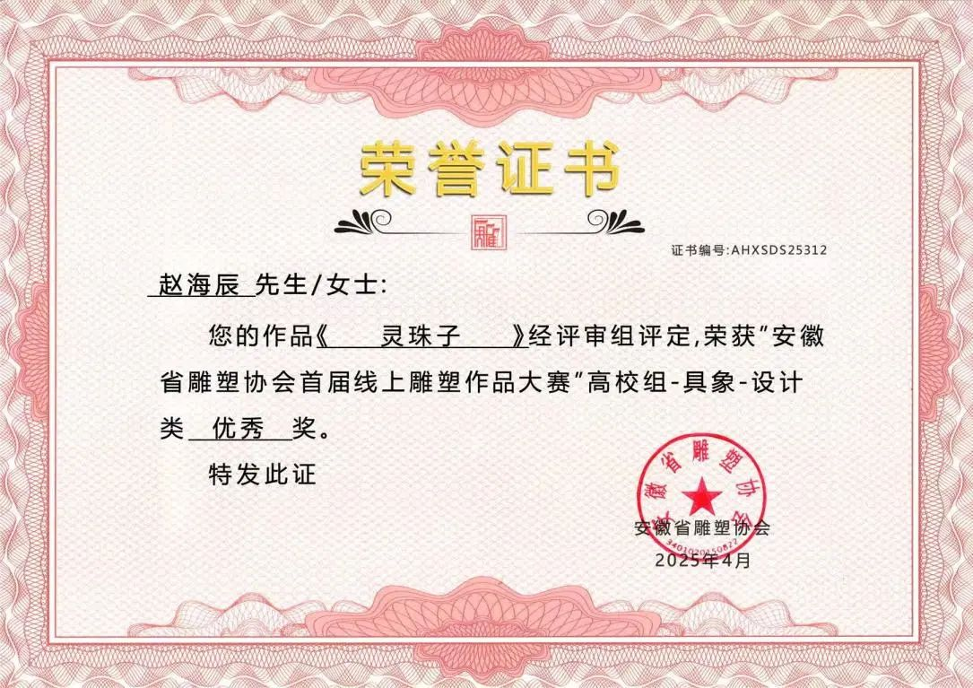 此次在安徽省雕塑协会首届线上雕塑作品大赛中斩获多项大奖,是美术设计学院公共艺术专业发展历程中的一个重要里程碑。从徽州木雕的岁月留痕到代码构建的虚拟场域,每一件雕塑作品都是传统与现代的碰撞,承载着创作者对世界的感知与表达。美术设计学院公共艺术专业正以"守正创新"为育人理念,构建传统工艺与数字科技深度融合的教学体系。未来,我们将继续深耕艺术教育,培养更多兼具传统功底与创新思维的复合型人才,为艺术领域注入新鲜活力!