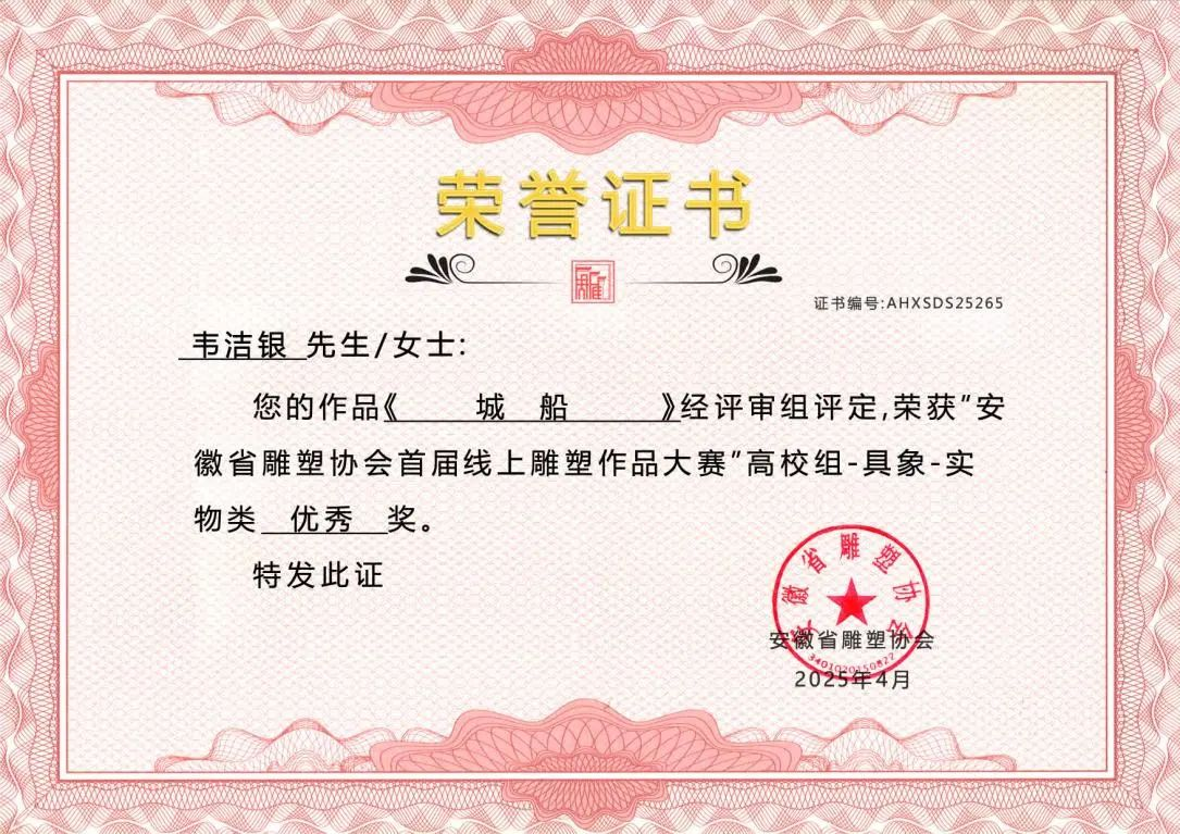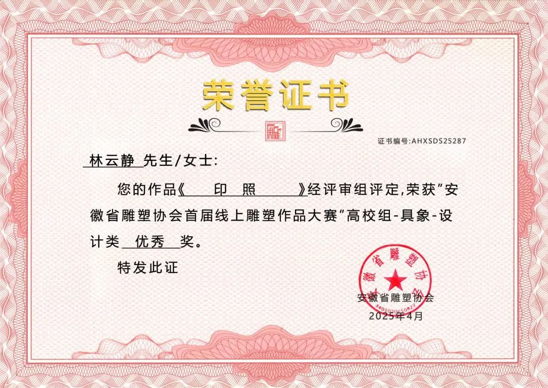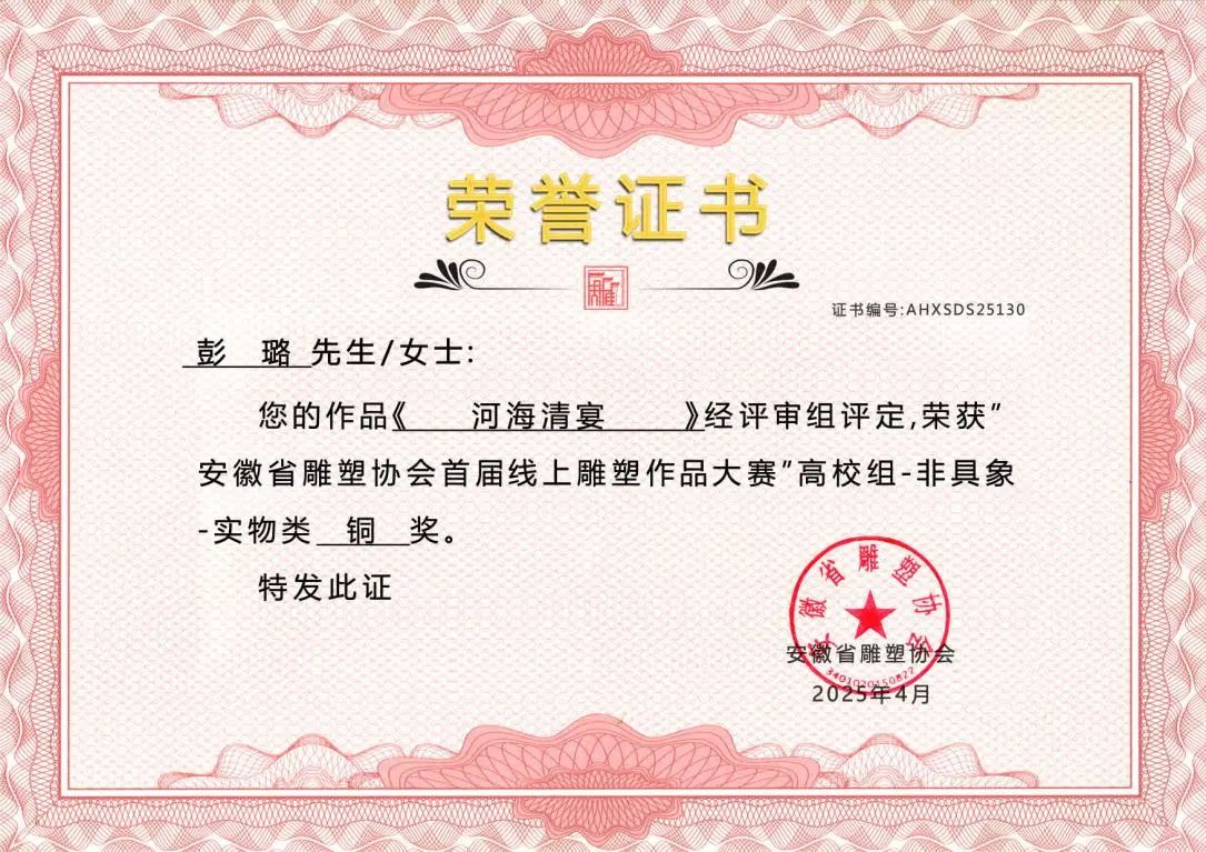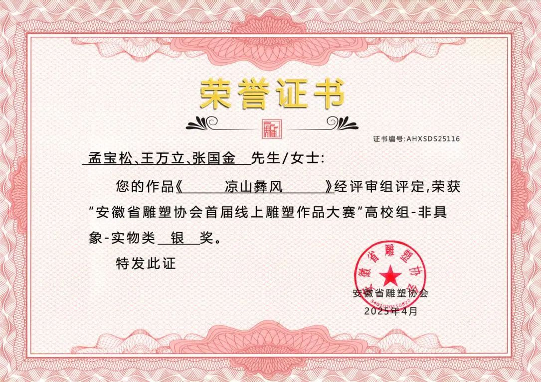 此次在安徽省雕塑协会首届线上雕塑作品大赛中斩获多项大奖,是美术设计学院公共艺术专业发展历程中的一个重要里程碑。从徽州木雕的岁月留痕到代码构建的虚拟场域,每一件雕塑作品都是传统与现代的碰撞,承载着创作者对世界的感知与表达。美术设计学院公共艺术专业正以"守正创新"为育人理念,构建传统工艺与数字科技深度融合的教学体系。未来,我们将继续深耕艺术教育,培养更多兼具传统功底与创新思维的复合型人才,为艺术领域注入新鲜活力!