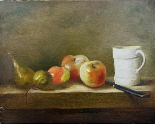 临摹夏尔丹《水果与白色杯子》油画40×50cm