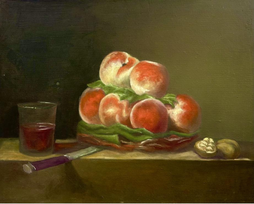 临摹夏尔丹《桃子与红酒》油画40×50cm
