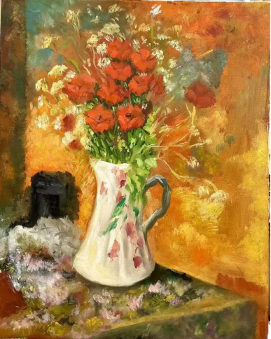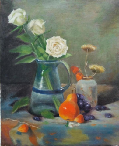临摹大卫里德尔《玫瑰花静物》油画40×50cm