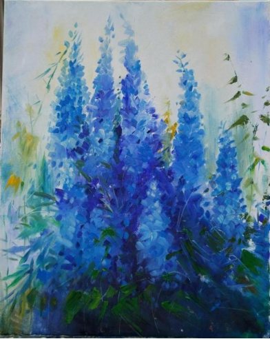 临摹亚历山大.谢尔盖耶夫《飞燕草》油画40×50cm