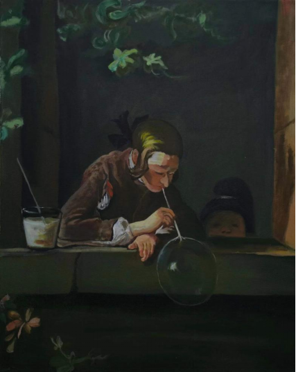 临摹夏尔丹《吹肥皂泡的少年》油画40×50cm