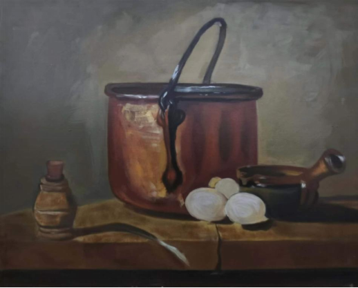 临摹夏尔丹《铜锅与鸡蛋》油画40×50cm