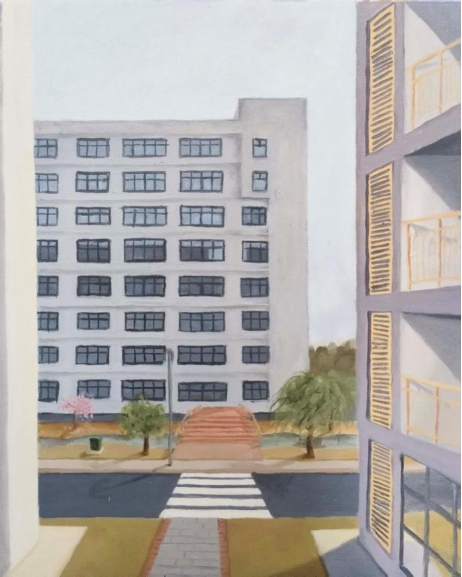 学习心得:本学期接触并学习了古典油画技法,在课上课下也在应用,带来了全新的体验,同时还进行了校园风景的创作,用学习到的知识带到画里融入进生活,不仅是学习知识,更是灵活运用了学到的知识,是一种新的感受。