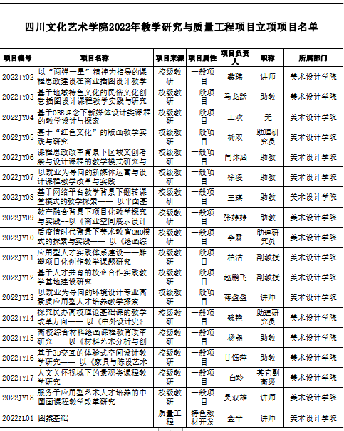 四川文化艺术学院2022年教学研究与质量工程项目立项项目名单