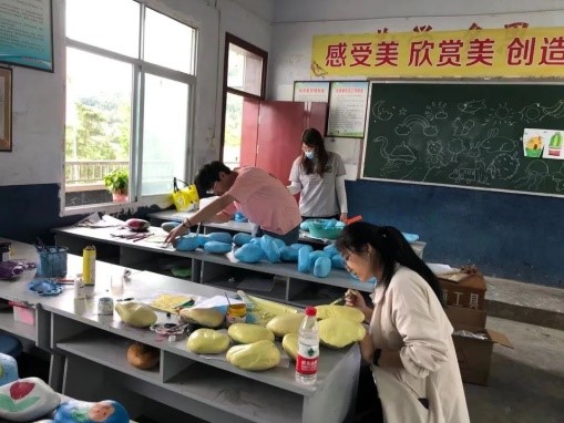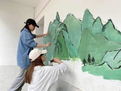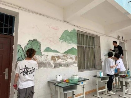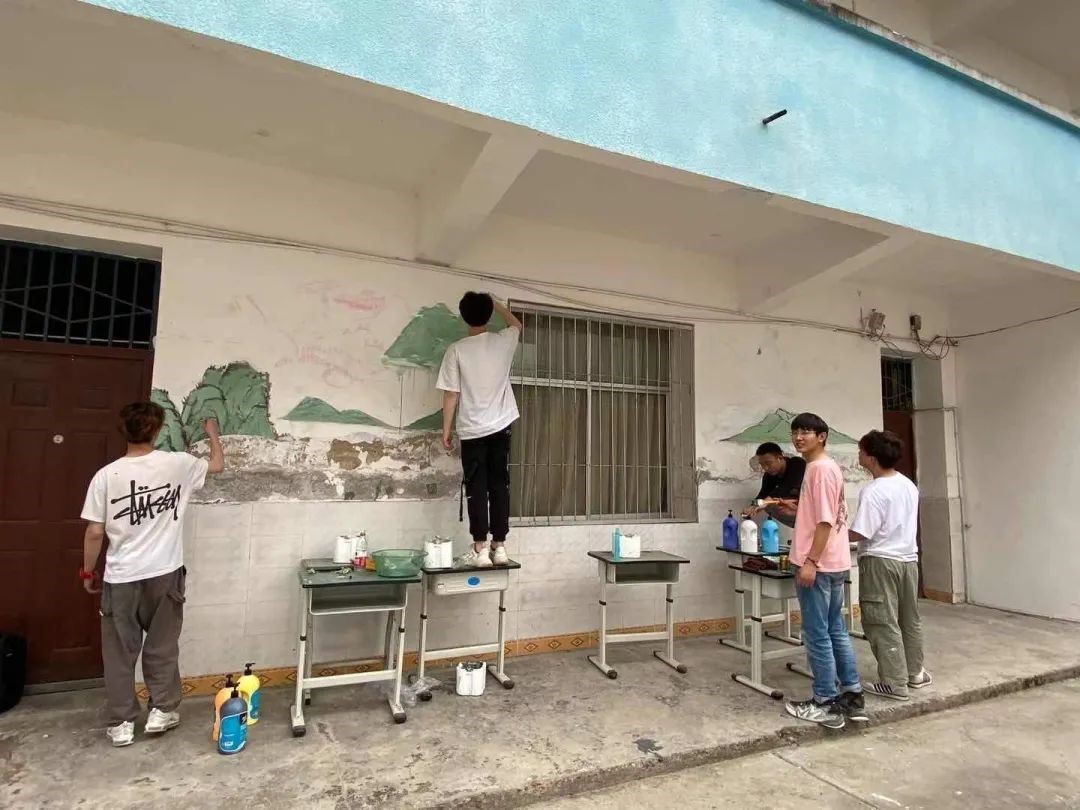 在此期间,视觉传达和环境设计的同学对鹅溪中学的艺术氛围进行了设计,美术学的同学对其进行具体实施。