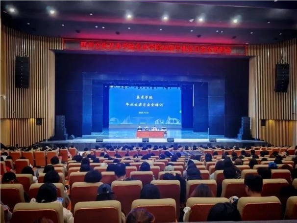 为切实强化毕业生实习期间的安全管理,保障2026届毕业生实习工作平稳有序开展,2025年11月18日14时30分,四川文化艺术学院美术学院于文昌剧院组织召开2026届毕业生实习安全培训会。本次会议由美术学院党总支书记商向阳主持,副院长焦长虹,实践实训(产教融合)负责人何潍,2026届全体毕业指导教师、2026届全体毕业生参加。